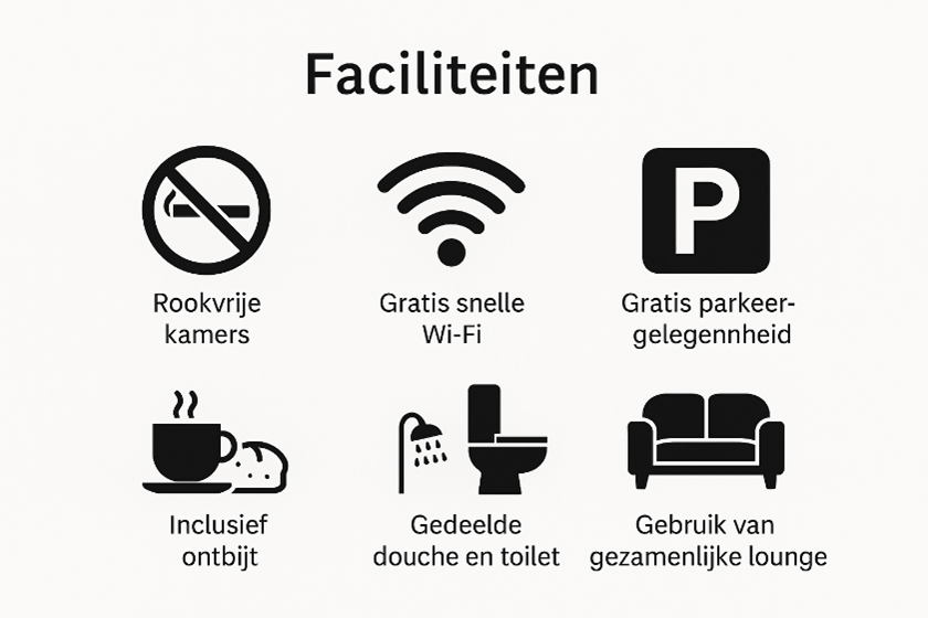 Onze B&B is gevestigd in de karakteristieke voormalige pastorie, waar historie en gastvrijheid samenkomen. Je overnachting in een sfeervolle ruime kamer zonder televisie. Ideaal om écht tot rust te komen- maar waar in de gezamenlijke lounge een tv aanwezig is voor wie dat wenst. De lounge is ook een fijne plek om even te zitten, een boek te lezen of om andere gasten te ontmoeten.